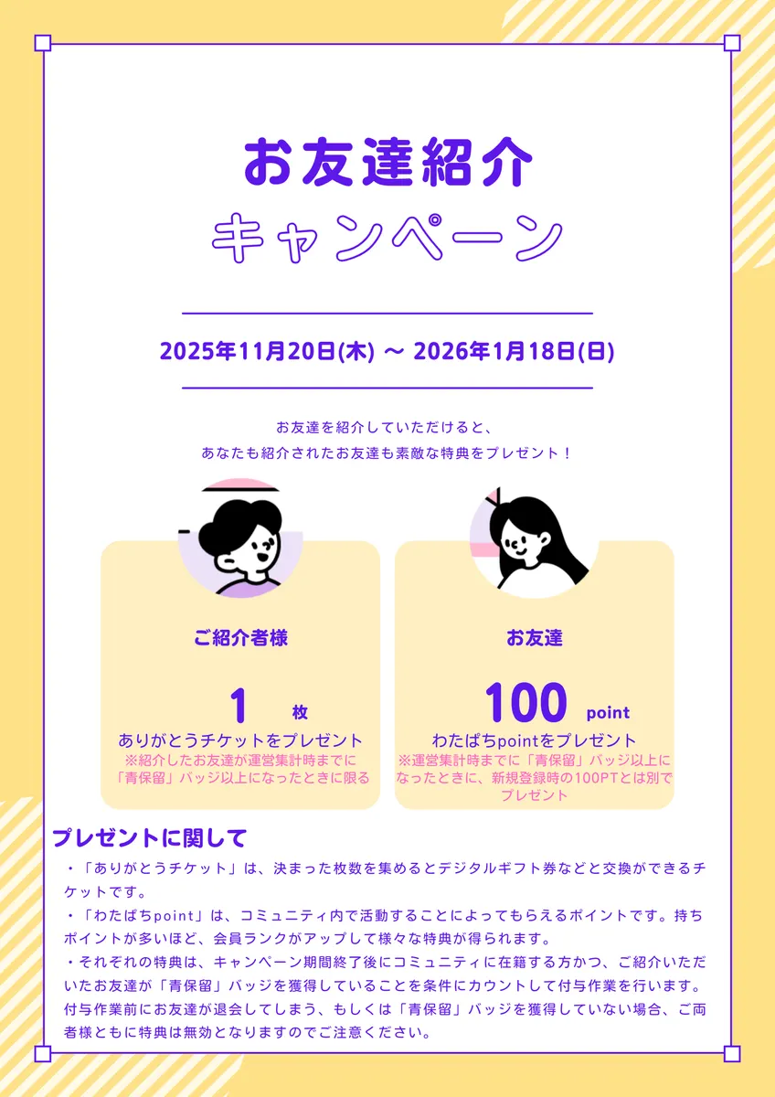 今回は、お得な「お友達紹介キャンペーン」のお知らせです!!