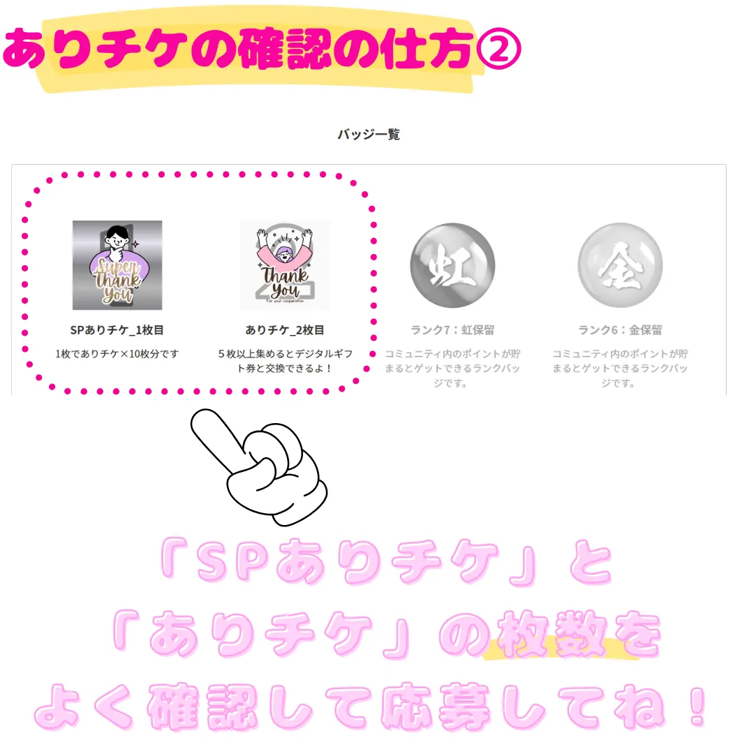 自分が何枚ありチケ持っているか分からない…という方はこちらの画像を参考に確認してみてください!↓